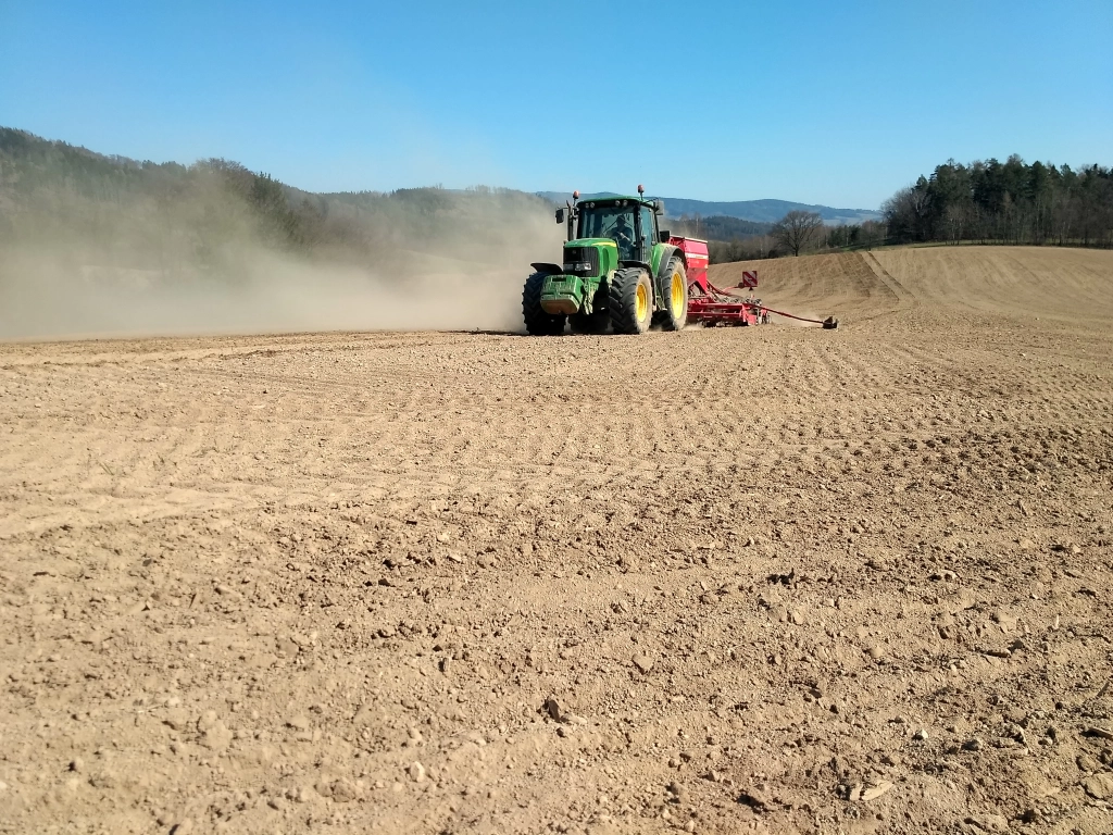 Jarní počasí přípravě i setí celkově přálo. Ozimou pšenici jsme posílili poslední dávkou dusíku na podporu růstu a i přes několik oprav techniky se práce dařily.